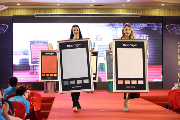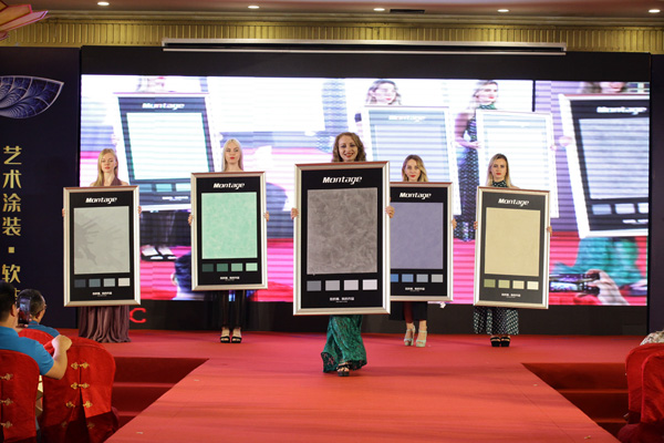 當美麗的模特手持蒙太奇藝術涂料新品走出舞臺那一刻,現場氣氛瞬間被燃爆,響起雷鳴般的掌聲。
