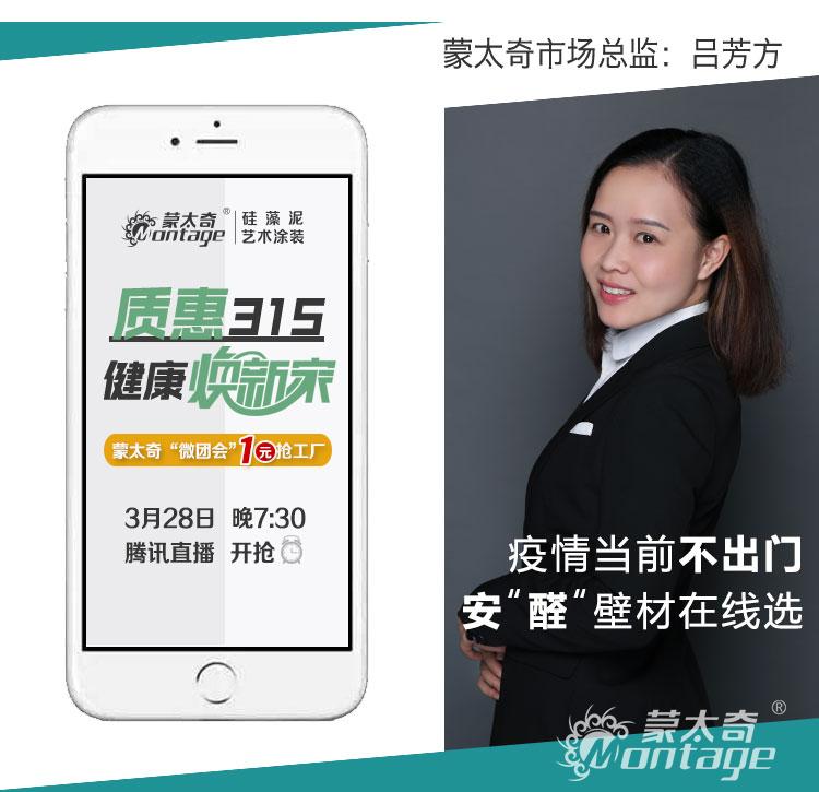 疫情雖阻止我們相見,但阻止不了我們對健康煥新家的需求。為滿足消費(fèi)者足不出戶,安“醛”壁材在線選,蒙太奇品牌推出「質(zhì)惠315·健康煥新家—蒙太奇“微團(tuán)會(huì)”1元搶工廠」活動(dòng),并于3月28日與您相約騰訊直播間,廠家千萬補(bǔ)貼大派送,直播鉅惠不間斷!